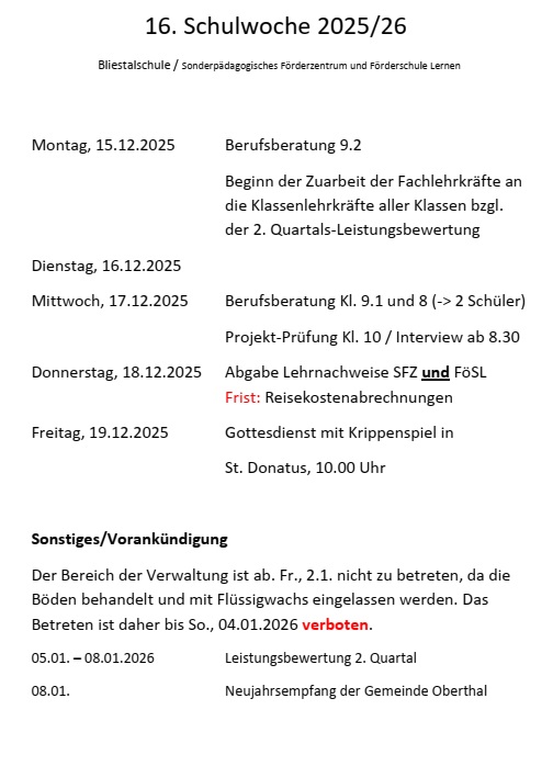 - Der Pausenverkauf/ Fleischkäseweckverkauf an der Bliestalschule kann stattfinden.