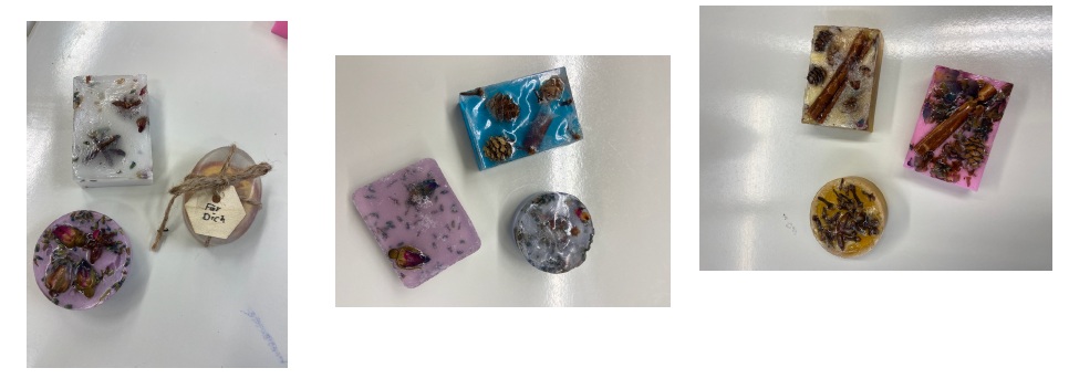 In der Klasse 8 fanden zwei stimmungsvolle Projekttage rund um das Thema Weihnachten und Advent statt. Am ersten Tag stellten die Schülerinnen und Schüler ihre eigenen Seifen her. Mit weihnachtlichen Düften wie Orange, Vanille und Kirschblüte sowie dekorativen Zutaten wie getrockneten Orangenscheiben, Zimtstangen, Sternanis und Nelken entstanden individuelle Kunstwerke. Die Seifen wurden anschließend liebevoll verziert und als kleine Geschenke dekoriert – perfekt für die Adventszeit.
