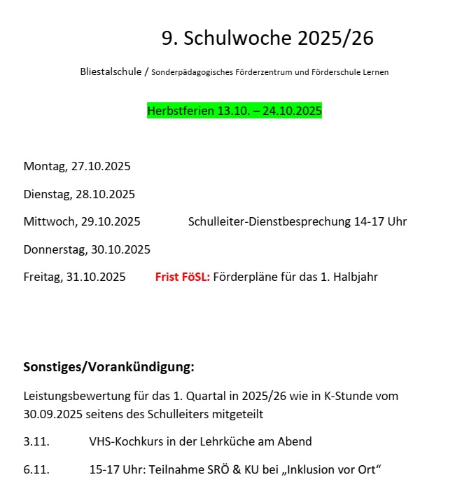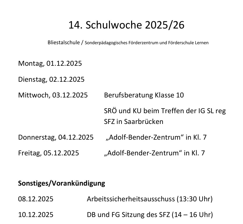 - Der Pausenverkauf/ Fleischkäseweckverkauf an der Bliestalschule kann stattfinden.